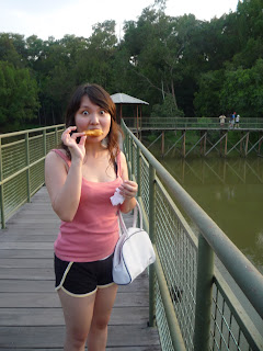 They used to have the swan peddling boats but it was no longer there now. I think the fishes ate them. =.=" Then I was telling Kaili how much I hated to eat the bread's toasted side (you know, the brown area) & I used to cut them out & throw inside the bread's plastic bag. Once I got caught & was scolded for wasting food by my mum, then I told her I wanted to save the bread crumbs for my tortoise wtf.